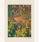 These unique and limited artworks have developed organically through hours of hand-printing in the studio. Whilst printing products pinned out onto our calico backing cloth, Clarissa noticed the beautiful serendipitous designs evolve from the random prints.