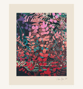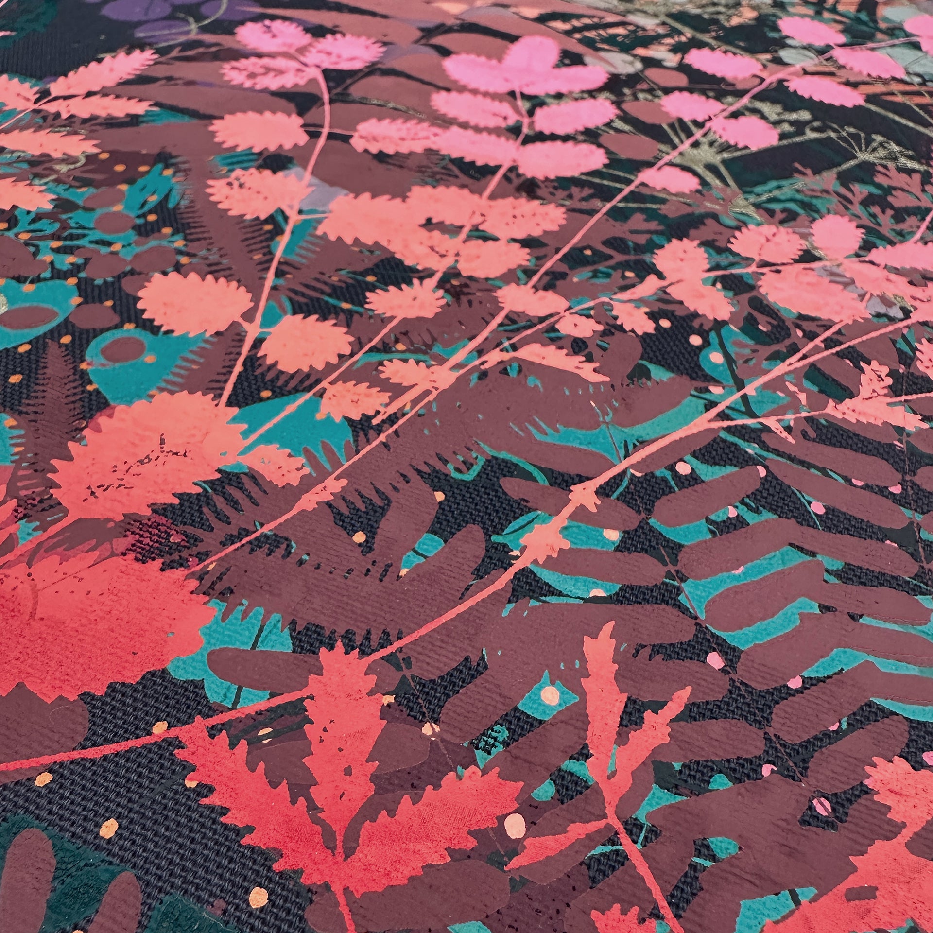 These unique and limited artworks have developed organically through hours of hand-printing in the studio. Whilst printing products pinned out onto our calico backing cloth, Clarissa noticed the beautiful serendipitous designs evolve from the random prints.