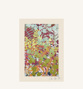 These unique and limited artworks have developed organically through hours of hand-printing in the studio. Whilst printing products pinned out onto our calico backing cloth, Clarissa noticed the beautiful serendipitous designs evolve from the random prints.