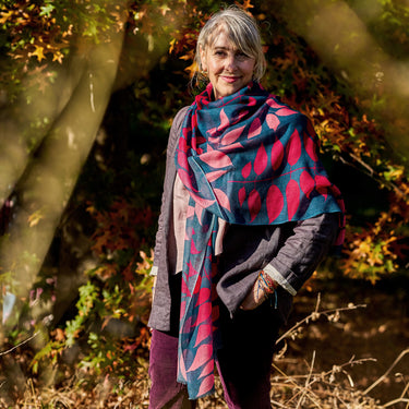 Ash leaf cashmere ring scarf - Raspberry