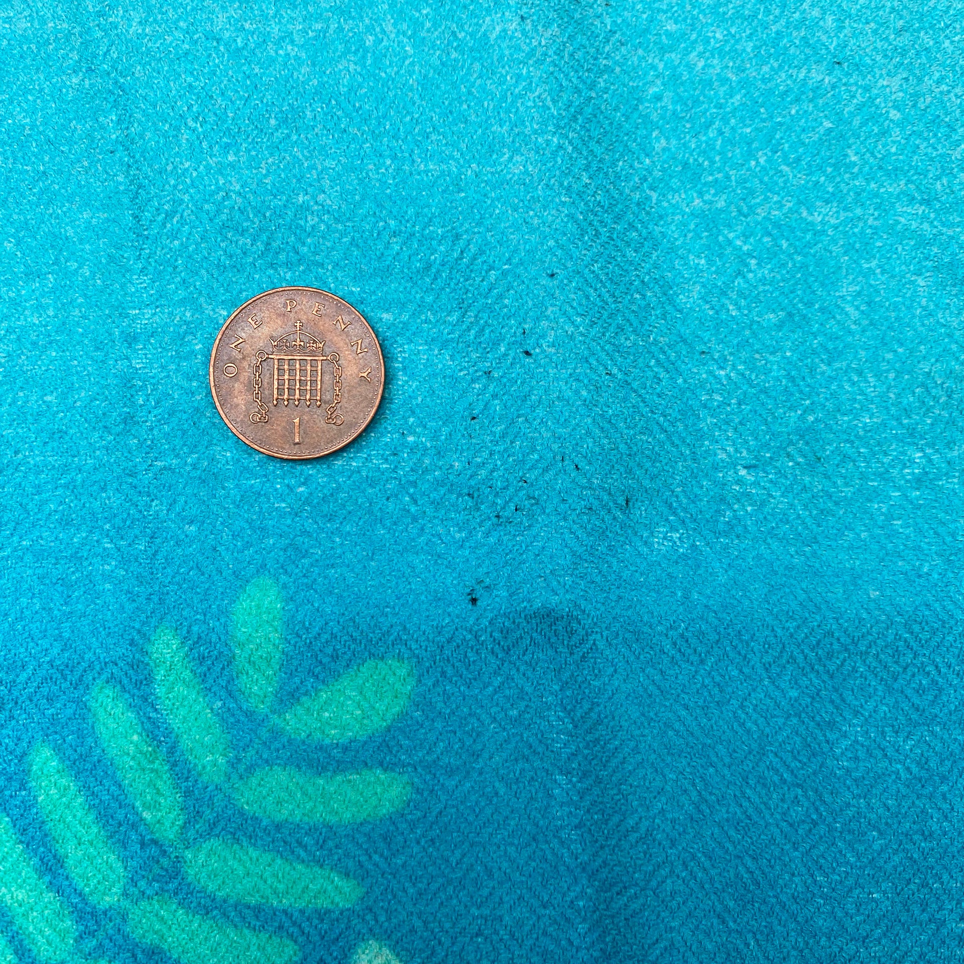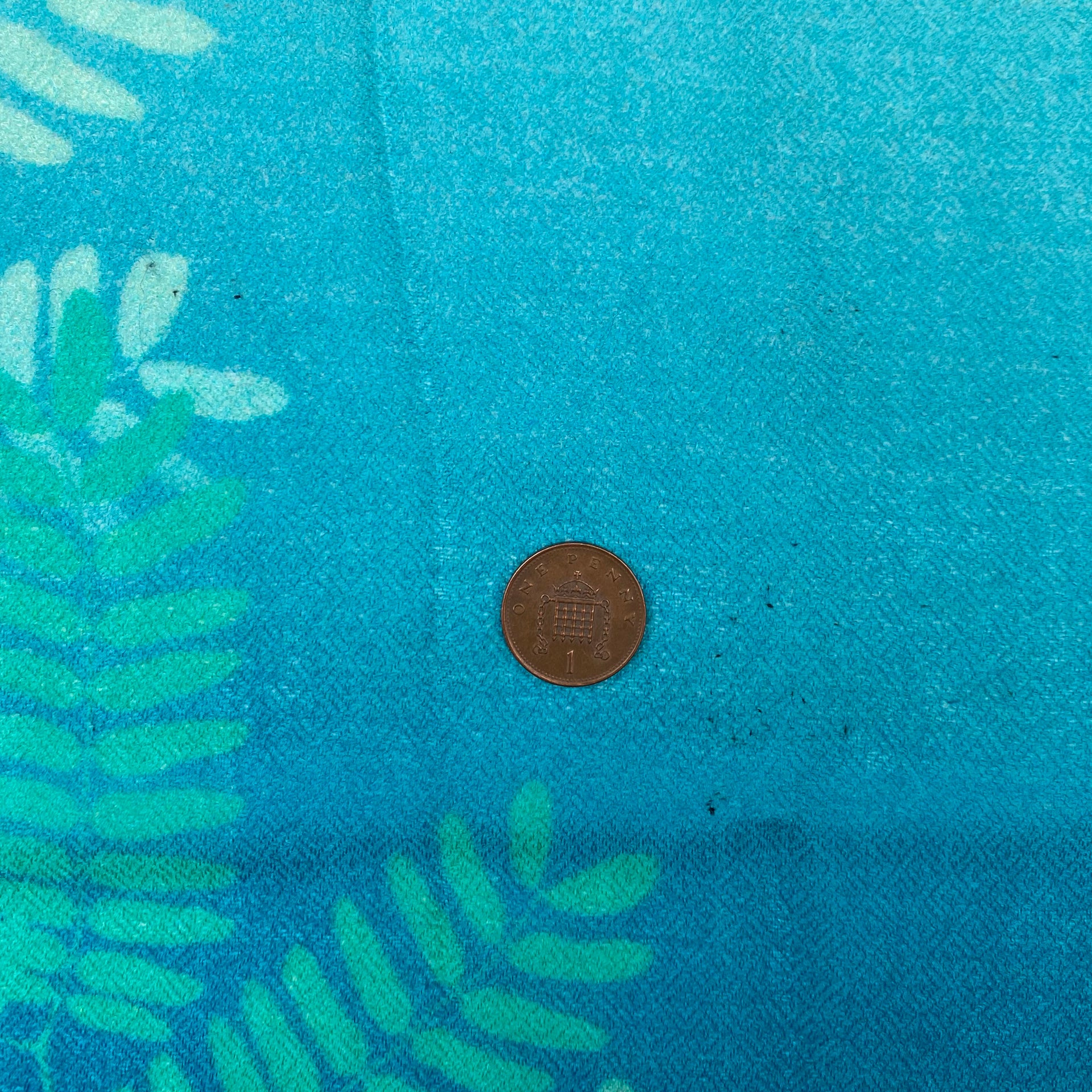 This aqua cashmere scarf features a delicate pattern of acacia leaves fanning out across a signature Clarissa Hulse ombre background. The design is based on a spray of leaves that Clarissa found in Highbury, and reimagined in a palette of ethereal blues back at the studio.