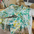 'This best-selling design is inspired by the patterns that emerge through hours of hand-printing in the studio. Whilst printing products pinned out onto our calico backing cloth, I noticed the beautiful layers evolving from the random prints, and this formed the idea for the Serendipity design'