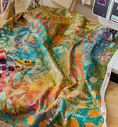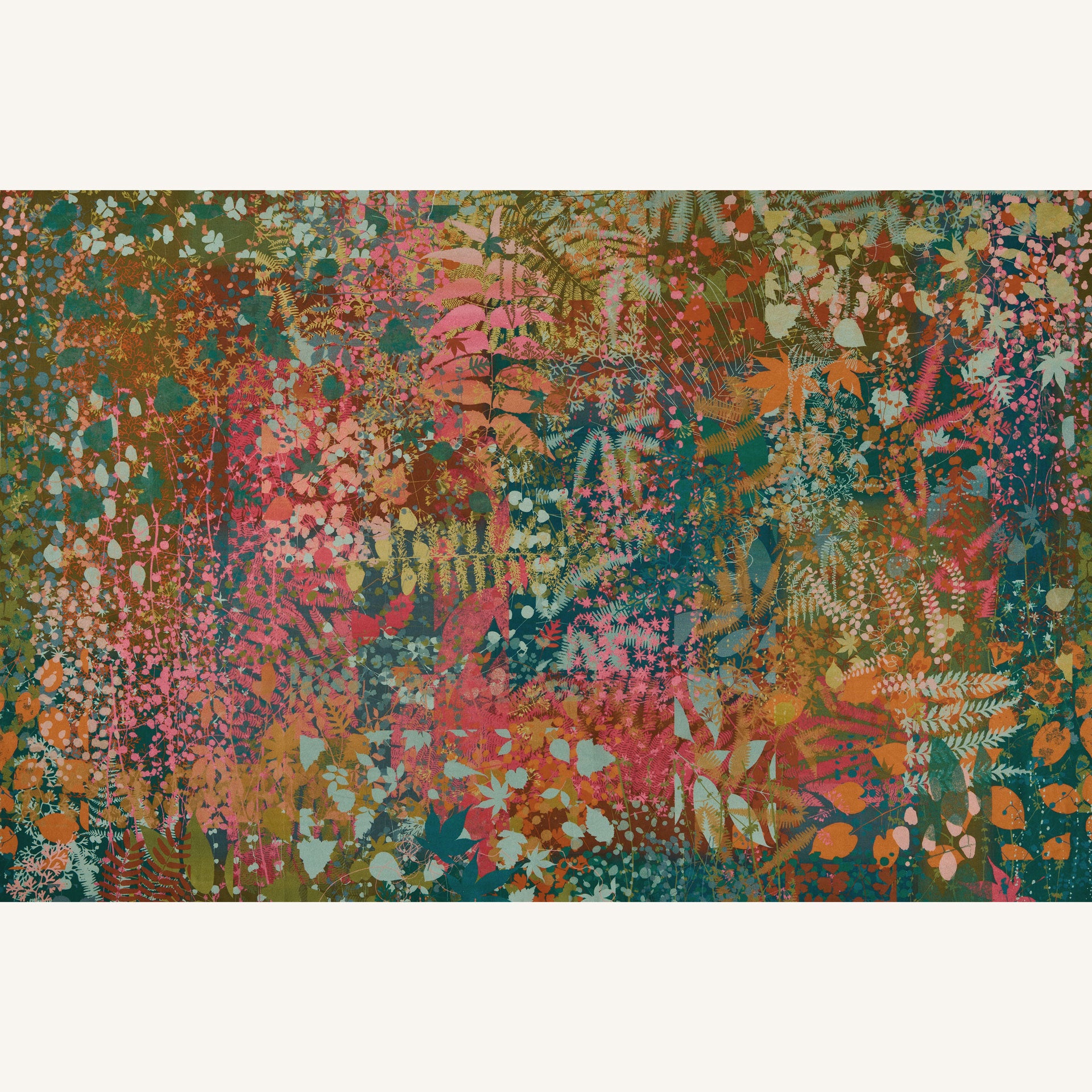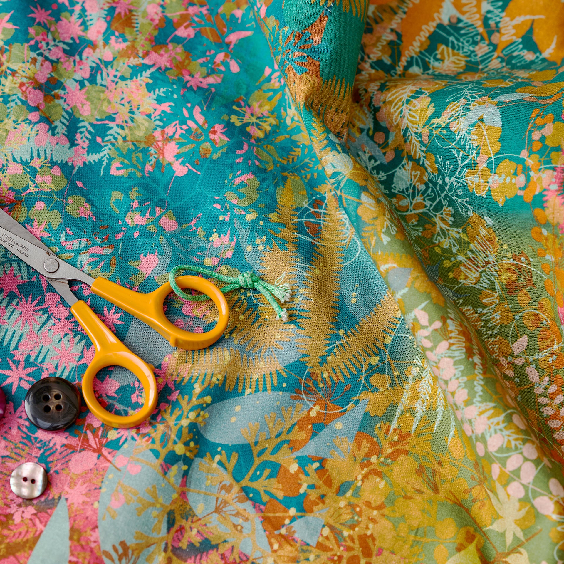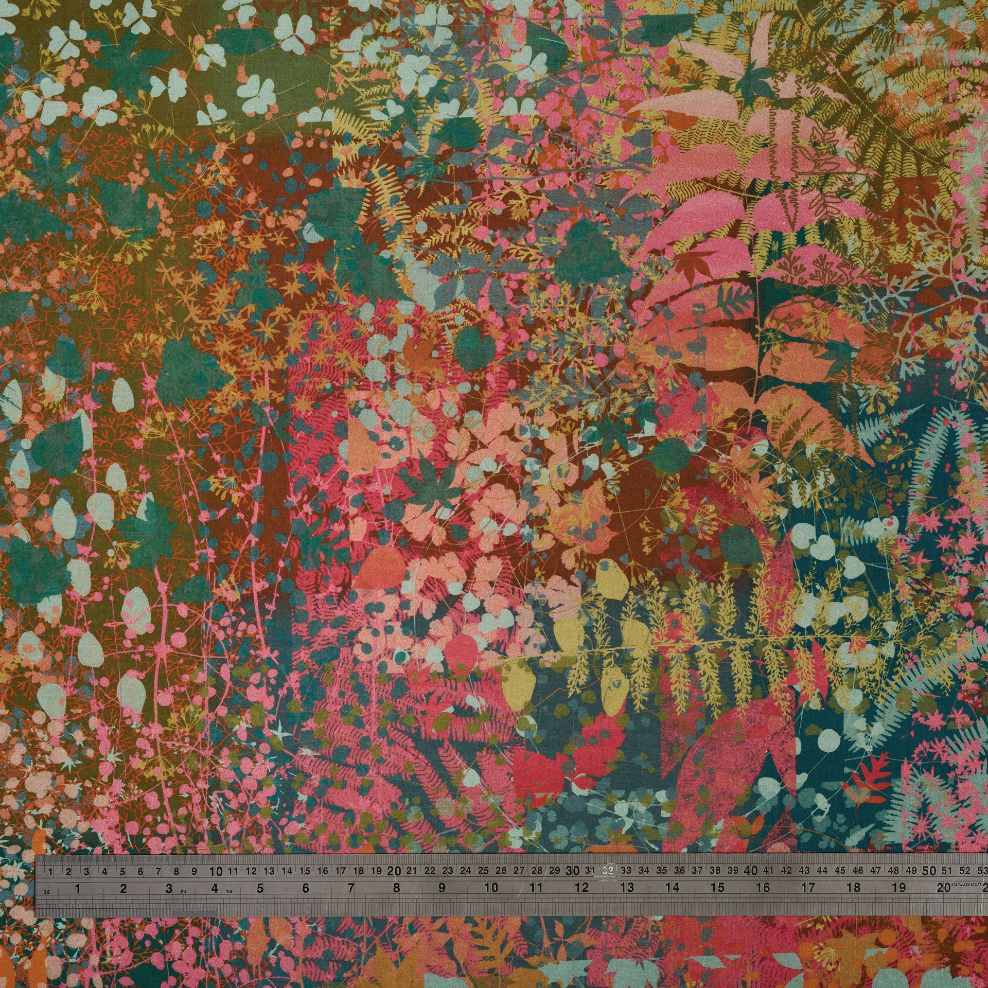 This fun and beautiful print was inspired by the studio backing cloth. Seedheads and leaves are layered together in a collision of autumnal hues including rust, teal, olive and ochre.